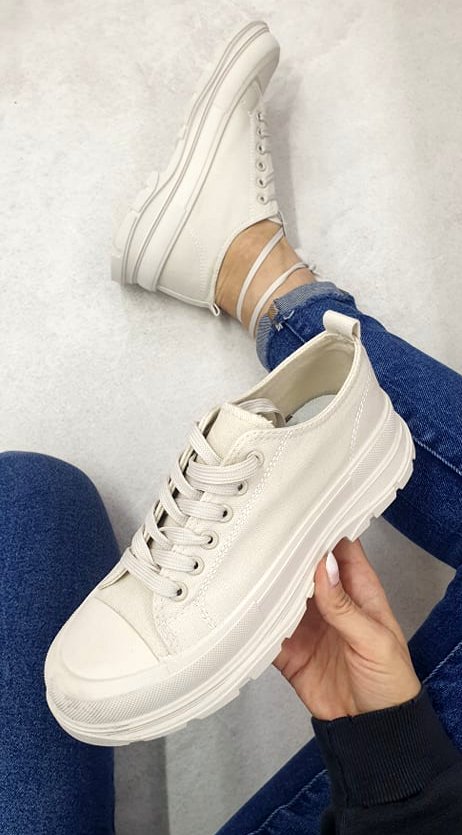 KLASYCZNE TRAMPKI NA GRUBEJ PODESZWIE KOLOR BEŻOWY
