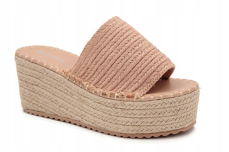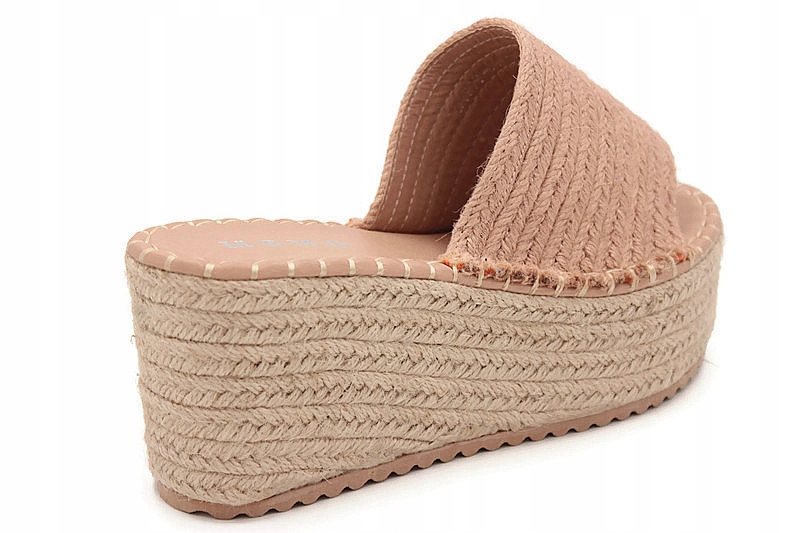 LL909 RÓŻOWE KLAPKI NA GRUBEJ PLATFORMIE